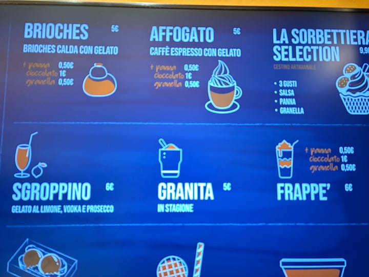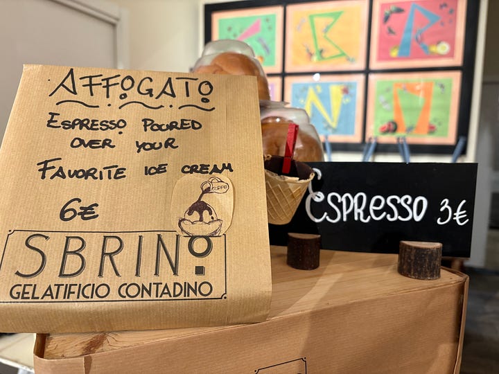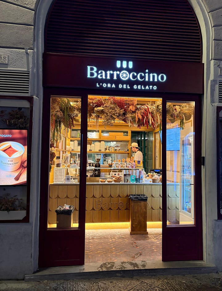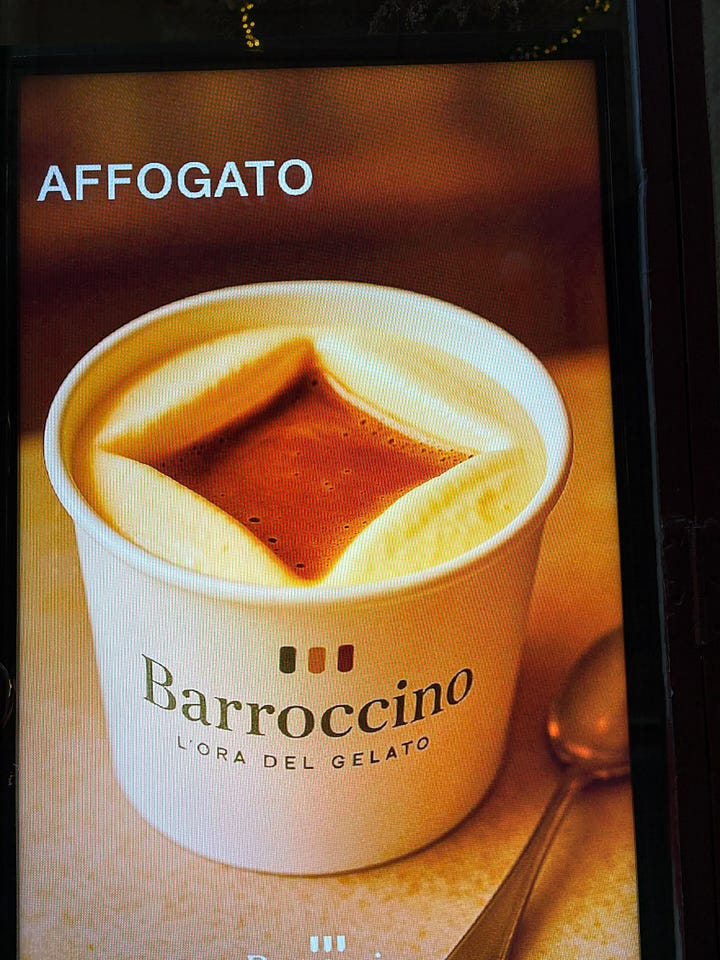 Barroccino offers affogato in a take-away coppetta. Affogato is now an essential offering for any gelateria in Firenze who wants to keep up with the times and do well, after Vivoli’s affogato insane virality. See my take on that here.