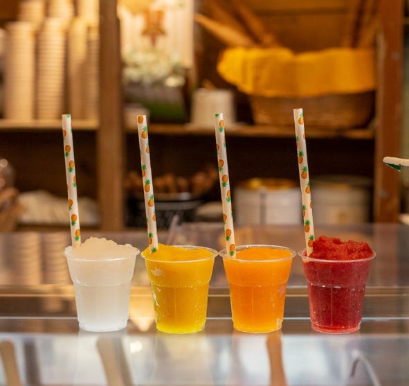 They of course offer the now-requisite affogato, and in winter they add vin brulé and hot chocolate to their menu, which most gelaterie don’t. In summer, in addition to regular granite, Sbrino has the unique offering of granite ubriache (drunk granitas) made with alcohol and mimicking drinks such as Negroni, Capirinha, and Mojito.